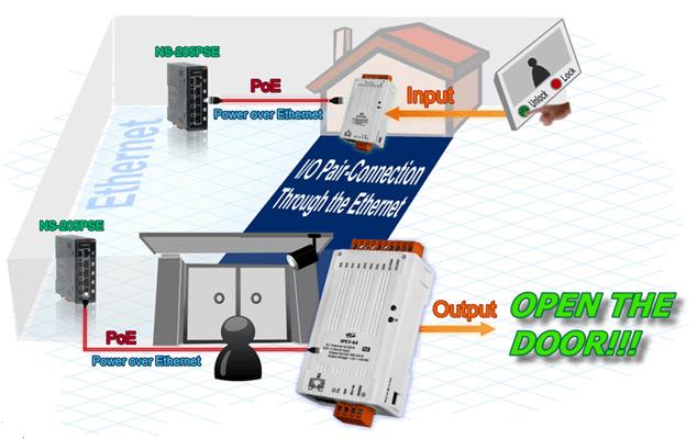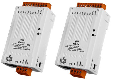 t(P)ET-C4网络型I/O模块支持了4通道的集电极开路 (Sink, NPN) 输出,也支持了I/O pair-connection 功能,通过以太网络产生DI和DO的远距逻辑关联,一旦完成设定,模块便可在背景下,使用Modbus/TCP通讯协议,持续地读取现场的 DI 状态,并且写到远程的 DO 设备。特别适用于连接一些不具有以太网络功能的数字I/O 设备。