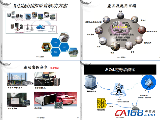 会议的第四部分由台湾艾讯区域总监沈郁倡先生先生与嘉宾分享艾讯的先进产品和理念。艾讯科技于 1990 年成立于台湾,主要研发和销售工控机、嵌入式系统、工业交换机、嵌入平板等工业控制和通讯产品,二十余年来,在欧美市场享有盛誉,品质卓越,已成为世界工业计算机领域公认的领先设计者和制造商。艾讯科技一直以来以创新的设计、高质量和高服务而领先业界。本次会议沈总除了对艾讯公司,对特色产品线进行了重点介绍外,还着重阐述了艾讯公司的工厂实力及品质保障。对M2M应用和商业机会也做了详细介绍,沈总谈到“M2M设备连接的数量将增长,在未来十年即2011至2021年期间的复合年增长率高达50%。” 主要是汽车及运输、安全监控、医疗保健、政府、Utility、零售、金融服务七个领域。