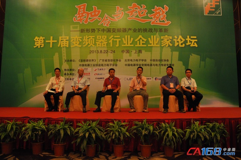 2013年8月22~24日,以"融合与超越"为主题的"第十届变频器行业企业家论坛"在上海成功举办。此次论坛由《变频器世界》、广东省自动化学会、北京电力电子学会、中国电器工业协会电力电子分会、中国电源学会变频电源与电力传动专委会和中国自动化协会联合主办,三菱电机机电(上海)有限公司和常州华威电子有限公司共同协办,台州富凌电气有限公司、中冶南方(武汉)自动化有限公司、上海鹰峰电子科技有限公司、莱姆电子(中国)有限公司、宁波南车时代传感器技术有限公司及深圳青铜剑电力电子有限公司给予大力支持,吸引了来自国内外上百家变频器厂商以及行业用户汇聚一堂,共同探讨逐步成熟的变频器产业在新形势下的革新与挑战。