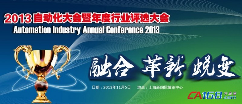 由中自传媒主办的"融合•革新•蜕变"为主题的第二届自动化大会将于2013年上海工博会召开期间举行。本届大会由中国自动化协会、中自传媒、中国国际工业博览会主办,PLCopen中国组织、中国电器工业协会电力电子分会、中国电源学会变频电源与电力传动专委会、中国自动化学会仪表与装置专委会、广东省自动化学会、上海市自动化学会、北京电力电子学会等指导,由中自传媒集团旗下CA168中自网及《PLC&FA》、《变频器世界》、《伺服控制》承办。