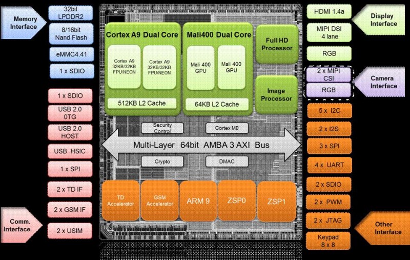 图示-四核智能手机芯片LC1813 TD-HSPA/GGE Quad-core Smart Phone Chip