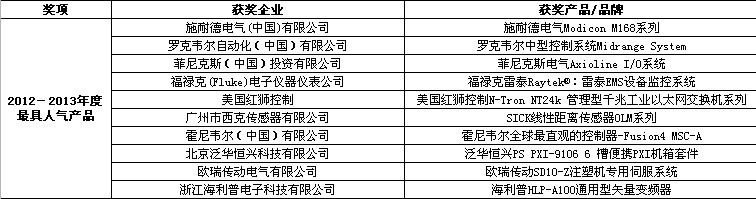 自动化大会2012-2013年度最具人气产品奖揭晓