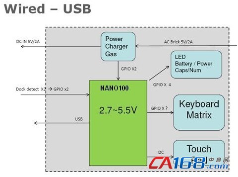 大联大凯悌集团代理的Nuvoton(新唐)推出的Cortex-M0系列解决方案可用于平板有线对接应用。其NANO100系列以最低功耗、低门数、精简程序代码、内建USB及多种高速通讯能力器件等特性,使其执行效能为一般微控制器的数倍。其先进低功耗工艺与内建 USB 2.0 全速装置,特别适用于消费电子、工业控制、安防、通讯系统,与需要高速计算的数据采集系统领域。