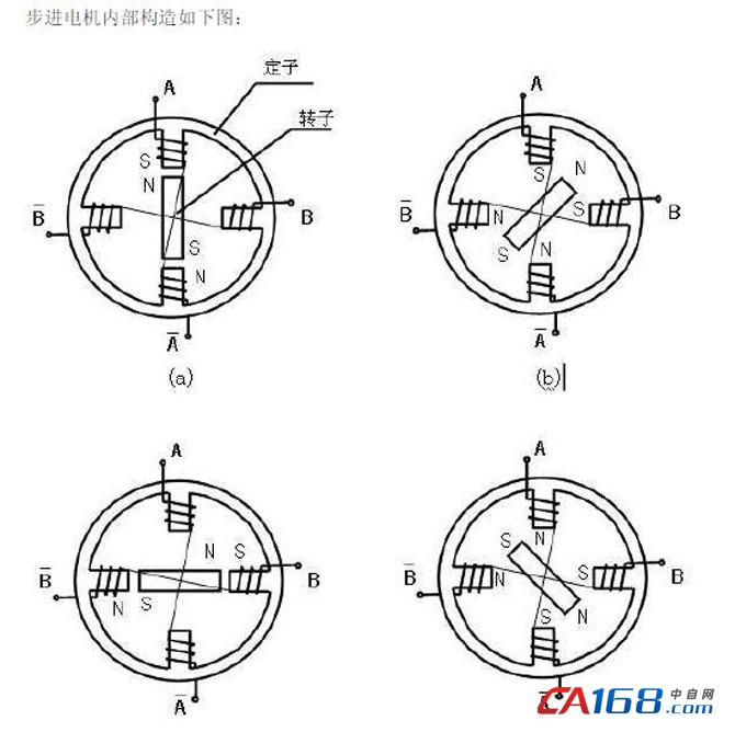 不管是两相四相,四相五线,四相六线步进电机。内部构造都是如此。至于究竟是四线,五线,还是六线。就要看A 和~A 之间,B 和B~之间有没有公共端com抽线。如果a 组和b 组各自有一个com 端,则该步进电机六线,如果a 和b 组的公共端连在一起,则是5 线的。