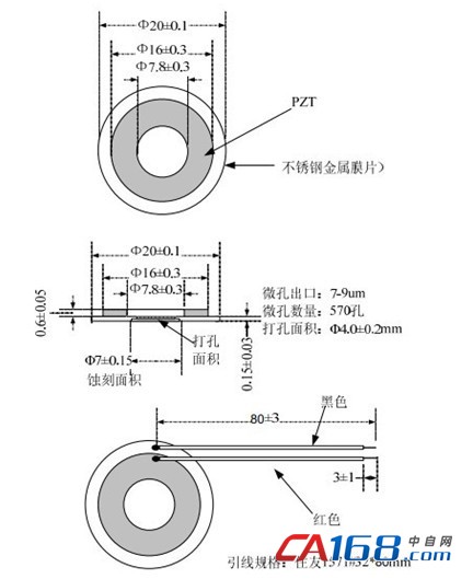 3.雾化片尺寸:(Φ16,Φ20,Φ25,厚度:1.2±0.01mm)